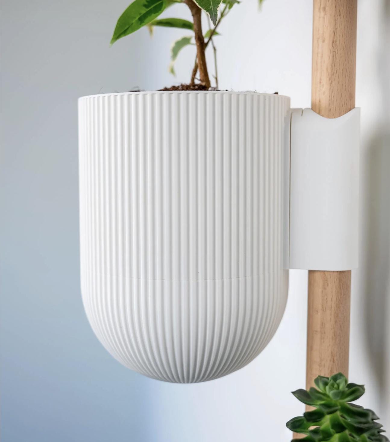 Meet The Ira Vertical Rail Planter – a refined, space-saving wall planter system for modern homes. Each fluted pot slides on via a dovetail and locks with a discreet wedge, giving a secure, wobble-free hold anywhere along the 85 cm pine rail. A hidden removable tray under each pot catches excess water for cleaner, kinder indoor plant care.
